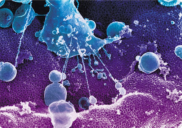 Для получения изображения в просвечивающем электронном микроскопе используют электроны, проходящие через образец, а в сканирующем электронном микроскопе регистрируются электроны, рассеиваемые или излучаемые поверхностью образца. Для изучения в СЭМ образец должен быть зафиксирован, высушен и покрыт тонкой пленкой тяжелого металла. Затем образец сканируется узким пучком электронов. Отраженные и рассеянные при облучении образца электроны попадают в детектор, анализирующий полученную информацию, которая затем преобразуется в увеличенное изображение на экране.