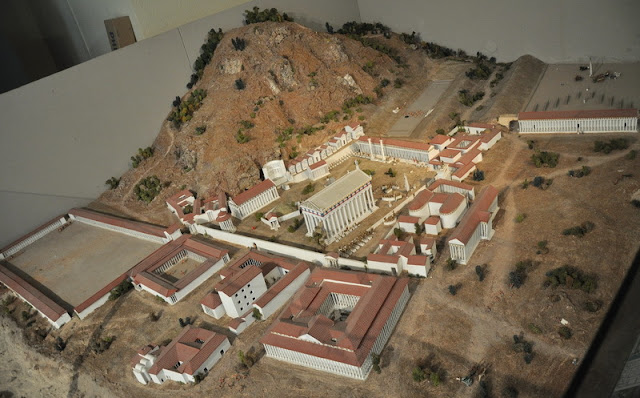 стадион и портик Эхо. В левом нижнем углу Леонидеон, пританей, палестра и