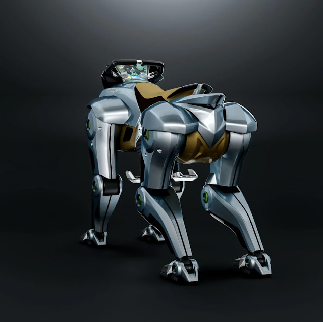 Его раздвоенные «копыта» имеют цепкие резиновые протекторы. Регулируемые по длине стремена подойдут широкому кругу ездоков, держась за рудиментарный руль и сидя на плавающем сиденье, достаточно длинном, чтобы вместить пассажира, и способном двигаться независимо от ... суставов робота.